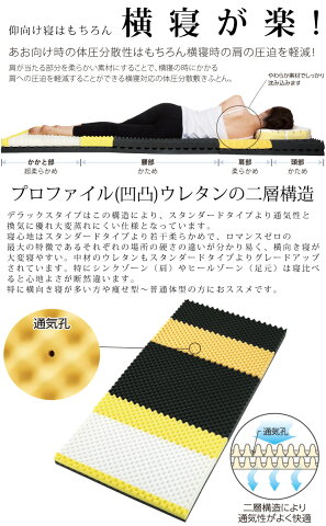 ウレタンも2層構造で体にあたる上層&下層はともにポコポコ感触のプロファイル構造でフラットスタンダードタイプに比べ湿気を逃がしやすく通気性に大変優れます。