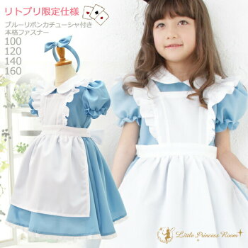 リトルプリンセスルーム限定別注<アクアドレス>【アリス 子供コスチューム 衣装 水色 エプロンドレス キッズ 子ども 服 リボン カチューシャ ワンピース プリンセス 不思議 ふしぎ ハロウィン プレゼント 女の子 コスプレ ラッピング ギフト