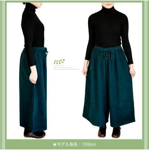 品番f17-13品名コーデュロイ・ロングパンツ ガウチョ ワイドパンツ スカーチョ/綿100% 中厚手 無地 裏地付き ポケット付き ウエストゴム&紐 細めライン 特徴秋色コーデュロイのゆったりすっきりコットンワイドパンツ♪