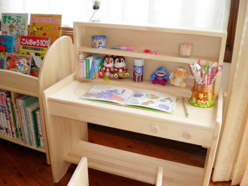 木遊舎(MOKUYUSYA) 幼児リビング木製学習3点セット【完成品】(おままごとキッチン兼用ミニ机・椅子・絵本立て)子供の成長に合わせてイスの向きを変えると4つの座面高 1台2役でお得な子供家具・デスクとディスプレイ絵本棚 天然木製2段面展示収納ラック絵本たて