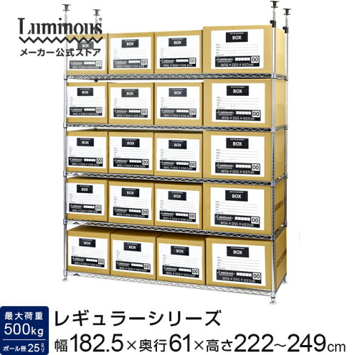 ルミナス 公式 つっぱりラック 耐震 スチールラック 物品棚 ルミナスレギュラー NLK1818-5T ポール径25mm 幅182.5×奥行61×高さ222〜249cm/5段[耐荷重:500kg/棚1枚:250kg] フリーラック アルミラック 店舗什器 メタル製ラック 収納棚 スチール棚