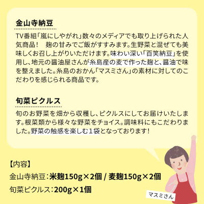【ふるさと納税】【10品限定!】がんこさんの贈り物(金山寺納豆+旬菜ピクルス)ギフトセット 糸島市 / 吉永紫 [AHC054]