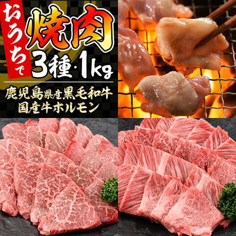 【ふるさと納税】日本一の和牛!鹿児島県産黒毛和牛肩ロース・牛モモ・国産ホルモンの焼肉3種セット<計1kg>おうちで焼き肉・BBQを楽しめる牛肉の詰め合わせ【ナンチク】b0-087