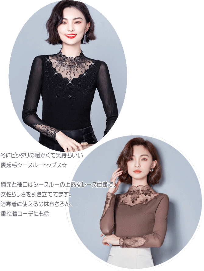 【透け感】若干あり 【伸縮性】若干あり 【裏地】あり 冬にピッタリの暖かくて気持ちいい 裏起毛シースルートップス☆