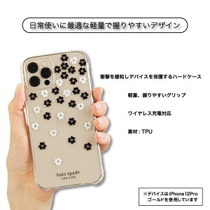 ・日常使いに最適な軽量で握りやすいデザイン・プレミアムシグネチャーケイトスペードニューヨークのグラフィックプリントとカラー・ワイヤレス充電対応商品名kate spade new york - Protective Hardshell Case for iPhone 12 Pro Max対応機種iPhone 12 Pro Max ( アイフォン12promax 12プロマックス アイフォン アイホン トゥエルブプロマックス )カラー ・ JAN(型番)01.Daisy Iridescent Foil/Clear (花柄 フラワー ホログラム オーロラ 虹色 クリア)4573565880630(KSIPH-154-DSYIR)02.FloralClear/CreamStones (花柄 フラワー クリーム色 クリア)4573565880661(KSIPH-154-HHCCS)03.ScatteredFlowersBlack (花柄 フラワー 黒 白 小花 クリア)4573565880692(KSIPH-154-SFLBW)04.Island Leaf Pink Glitter (リーフ 葉 ピンク 桃色 グリッター)4573565880722(KSIPH-154-ILPGL)仕様・ サイズ:16.30cm × 8.2cm × 1.2cm ( 40g )・ 素材:TPU・ 仕上げ:-商品説明ケイトスペードニューヨークの遊び心のある洗練されたスタイルで、あなたの個性をアピールしましょう。