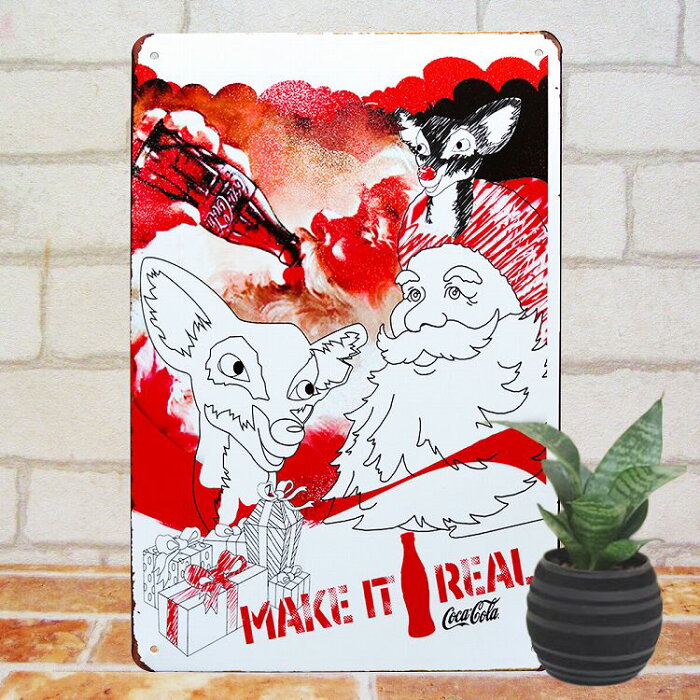クリスマス 飾り付け 雑貨 ブリキ看板k サンタとトナカイir インテリア ポスター コカコーラ グッズ サンタクロース 壁飾り 壁掛け BAR バー coca cola コカ・コーラ グッズ 動物柄 サインボード サインプレート アート アメリカン雑貨 絵画 店舗用